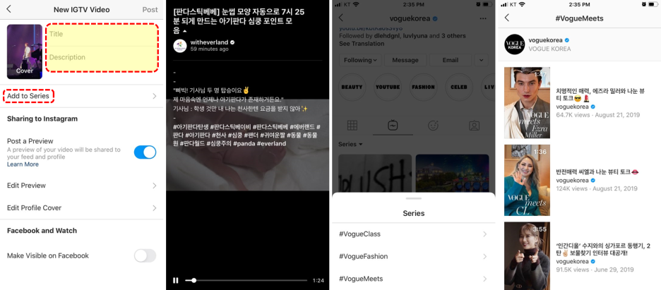 5. IGTV 시리즈를 설정하려면 시리즈에 추가를 누른다. 시리즈를 새로 생성할 경우, 시리즈 이름을 지정해야 한다.