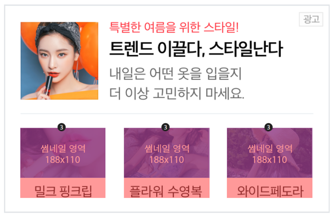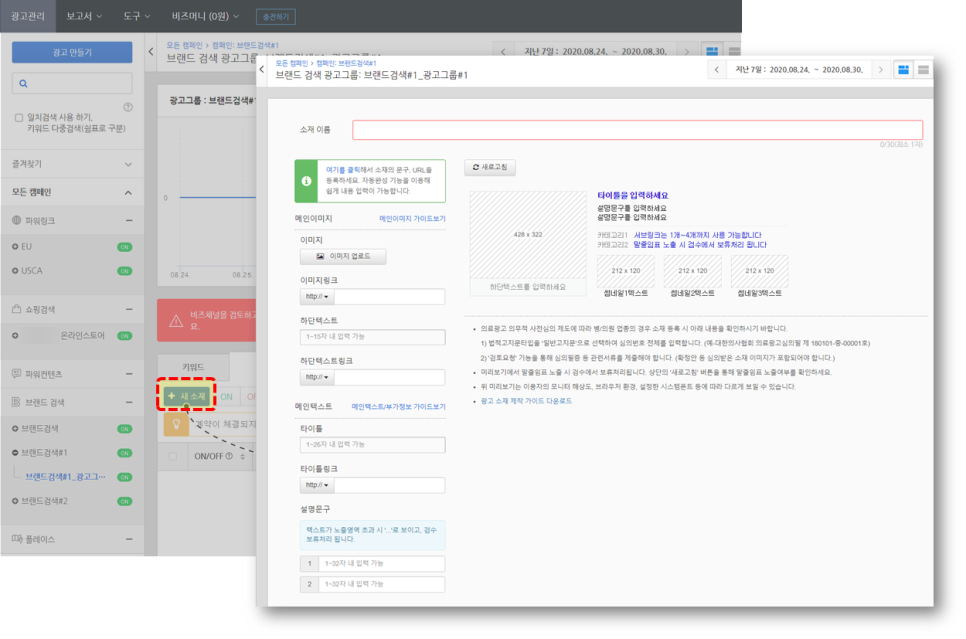 *소재는 광고그룹당 최대 5개까지 등록할 수 있으며, 복수 소재가 등록된 경우 유사한 비율로 롤링 노출된다.