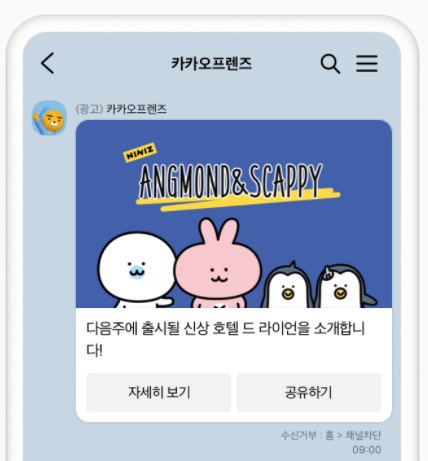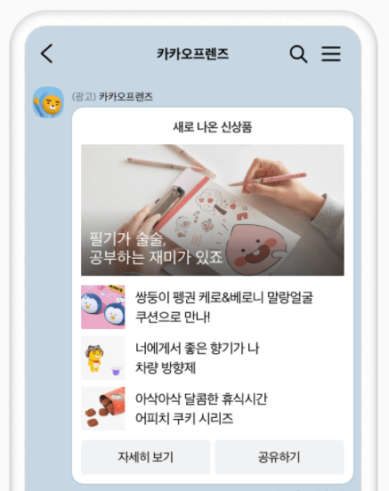 일반적으로 카카오 메시지광고는 유저의 카카오톡 채팅방으로 바로 전달되는 광고 유형으로, 클릭율 및 오픈율이 잘 나오는 광고상품 중 하나이다.