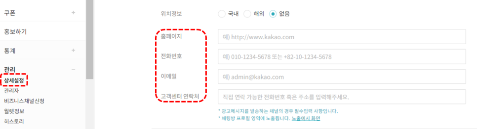만약 광고 메시지를 발송하여 브랜드 홍보를 하게 되는 경우, 비즈니스 정보 추가 세팅이 필요하다.