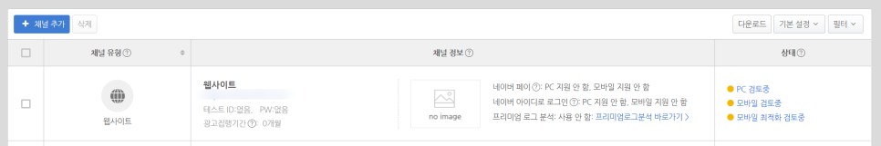 - 만약 비즈채널이 ‘검토중’ 이거나 검토를 통과하지 못해 ‘노출제한’ 상태라면 해당 광고 상품에 대한 검토는 진행되지 않는다.