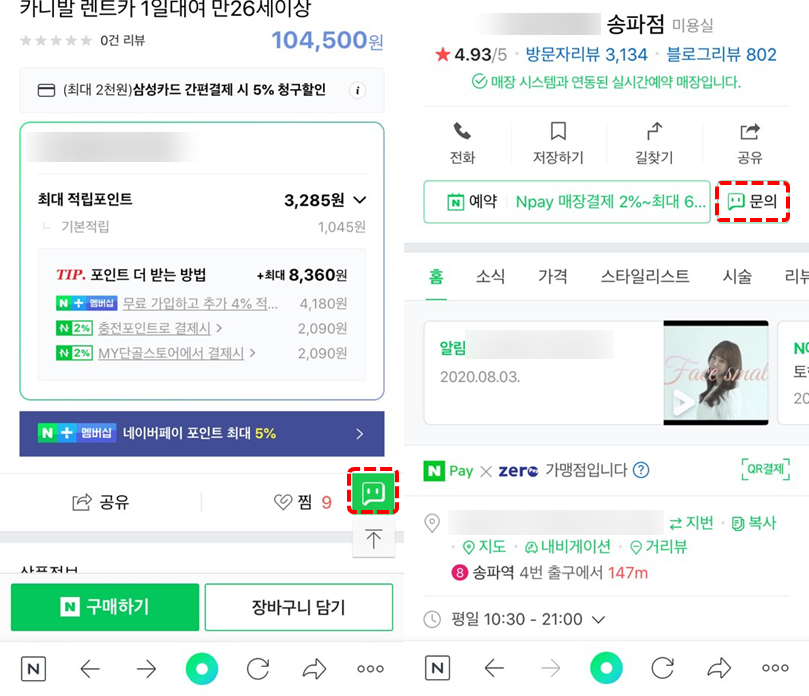 네이버 서비스 곳곳에 톡톡 버튼을 노출하면 시너지 효과를 낼 수 있다.
