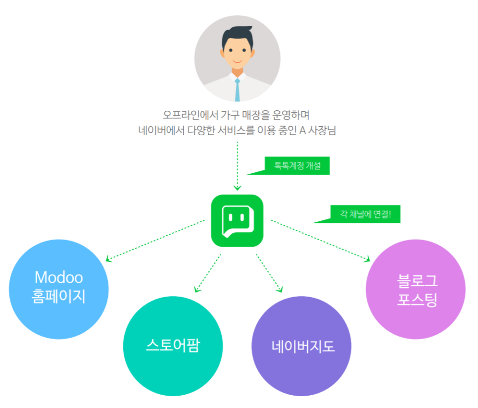 하나의 계정에 이용중인 네이버 서비스를 연결하면 유입은 많아지고 문의는 계정 한곳으로 모아지니 상담 효율이 높아진다.