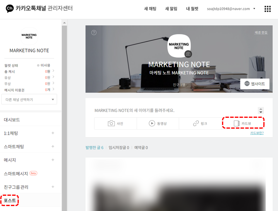 카카오톡 내 포스트 유형 중에서 메시지 전용 옵션이 적용된 카드뷰 포스트를 발행 수 있는데,