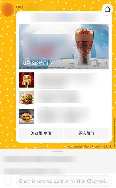 카드뷰 전체메시지는 메시지 하단에 행동유도버튼으로 '자세히 보기', '혜택 확인하기', '호캉스 떠나기' 등을 설정하고 해당 버튼을 클릭했을 때, 일반적인 웹사이트 혹은 포스트로 떨어지는 것이 아니라, 포스트 광고 화면으로 바로 떨어지게 할 수 있다.