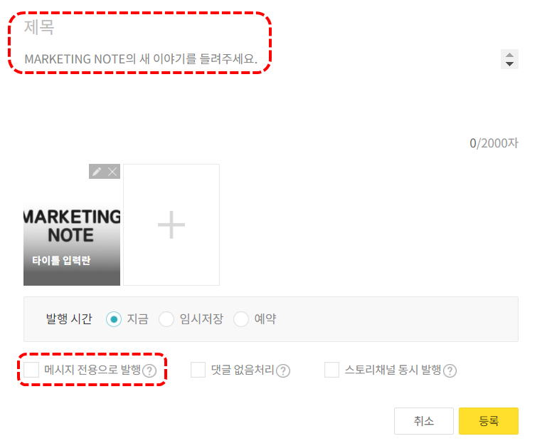*메시지 전용으로 발행할 경우, 포스트 제목과 내용은 생략해도 무방하다(피드에 공개되지 않는 포스팅이기에)