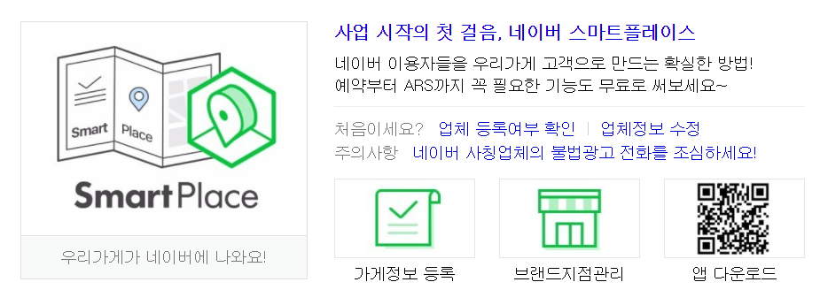 사업주가 네이버에 업체를 효과적으로 홍보할 수 있는 도구인데, 스마트플레이스에 업체 등록은 무료이며 등록한 결과는 네이버 내 여러 서비스에 노출된다.