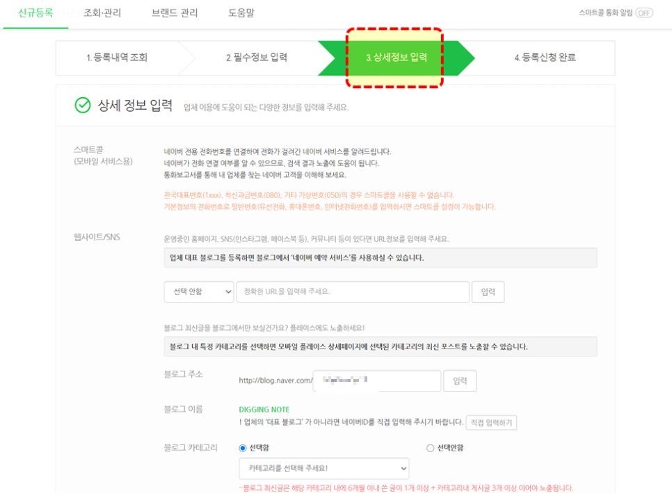 - 스마트콜 사용여부 설정: #스마트콜 은 네이버에서 제공하는 사업자 전용 무료 전화번호로써 050으로 시자작하는 고유 전화번호이다.
