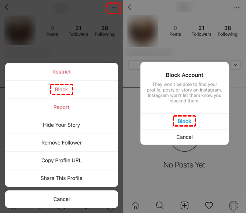 차단된 사람은 나의 인스타그램 프로필이나 게시물 또는 스토리를 찾을 수 없게 된다. 물론 차단했다는 사실은 상대방에게 알려지지 않는다.