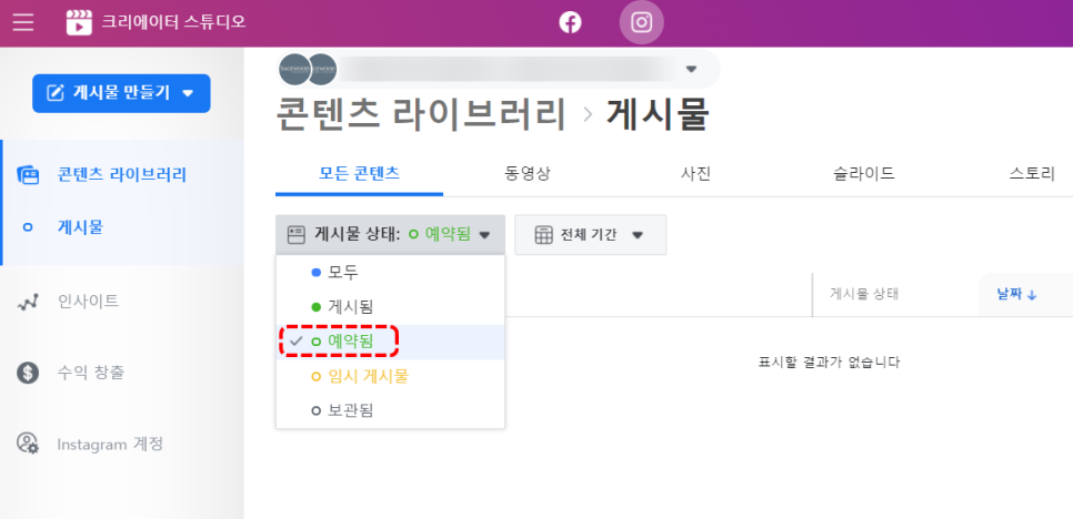 페이스북, 인스타그램 포스팅 예약발행하기
