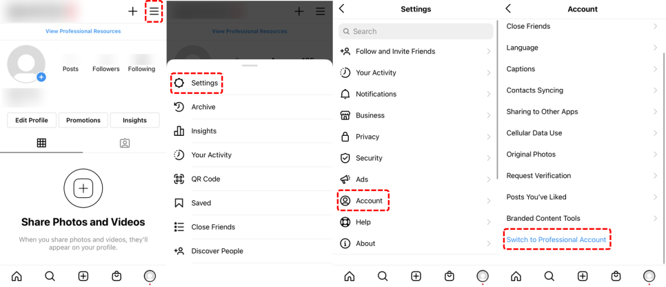 계정을 프로페셔널 계정으로 전환하게 되면 프로필, 홍보하기, 인사이트 확인 등의 인스타그램 비즈니스 기능에 엑세스할 수 있다.