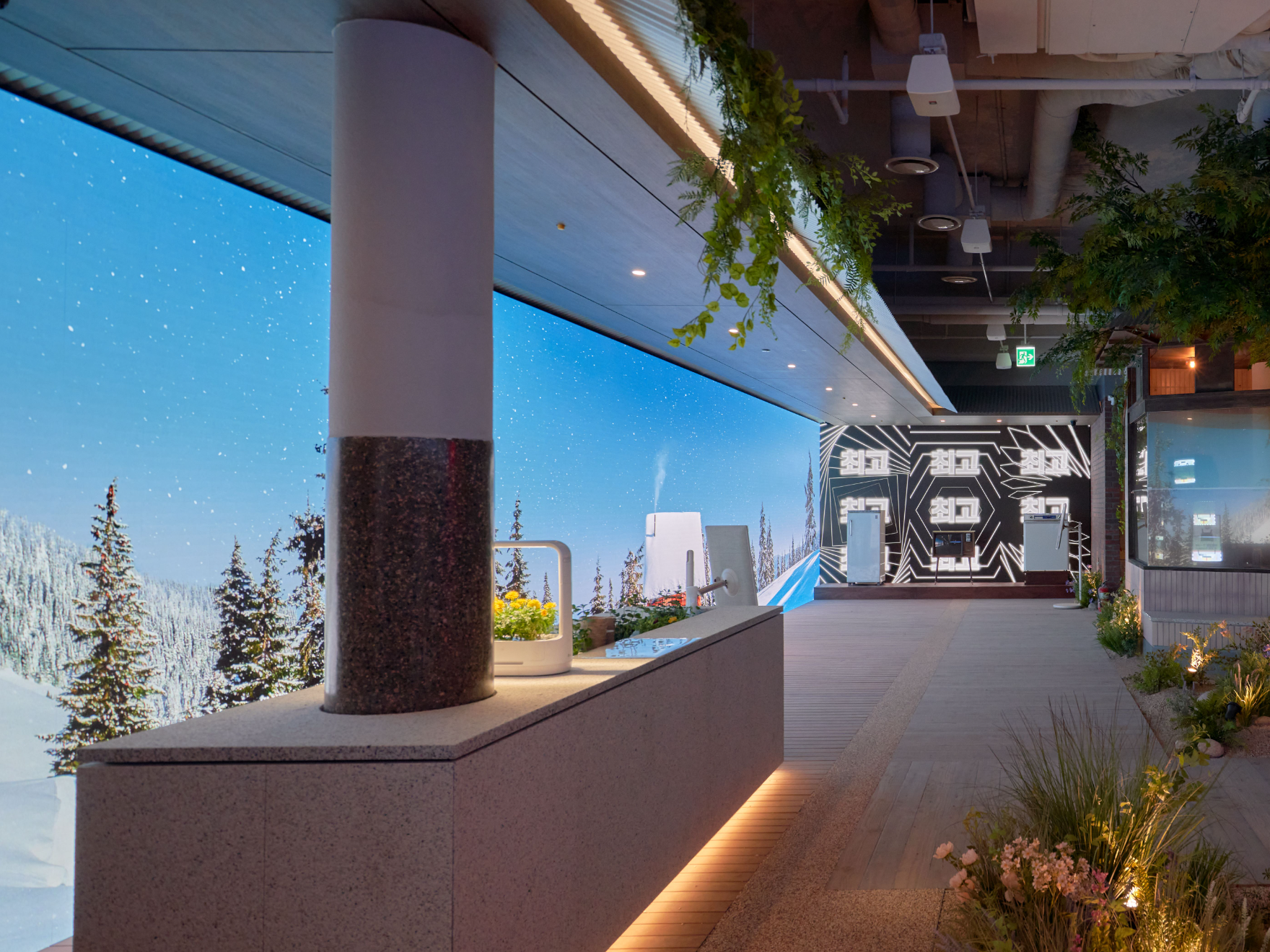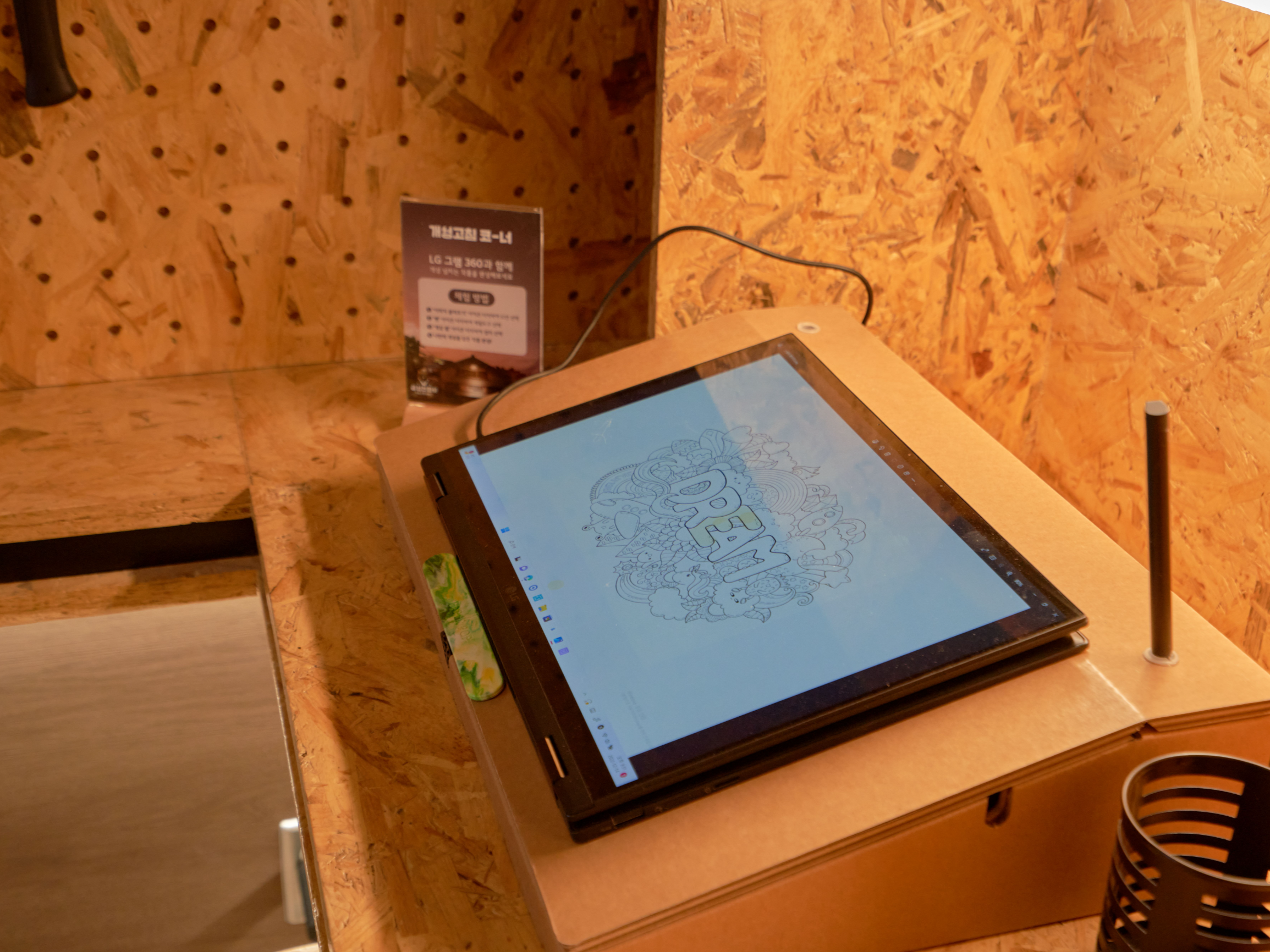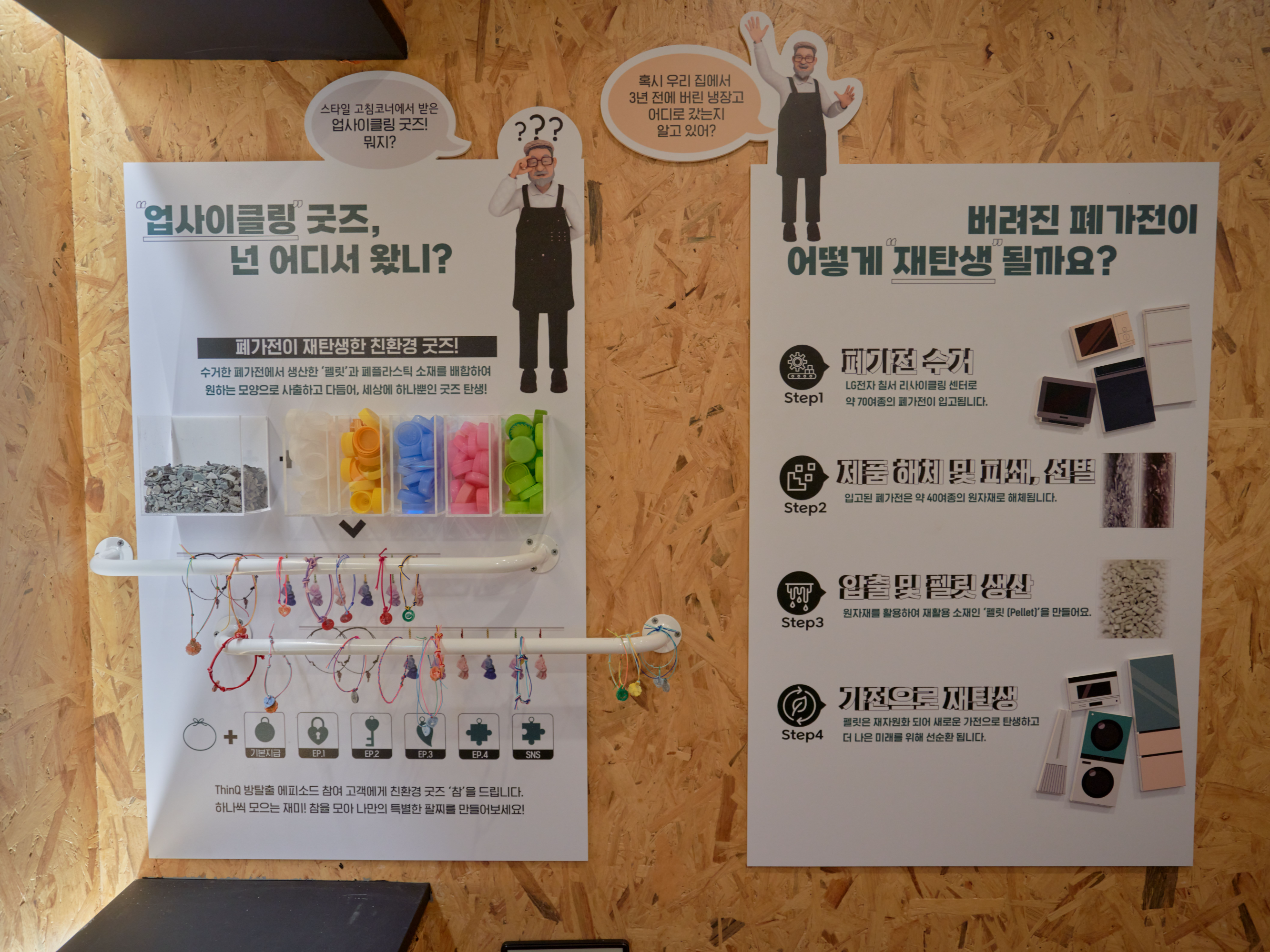 스타벅스와 LG전자의 협력 공간 답게 두 공간의 간판이 나란히 걸려있다.