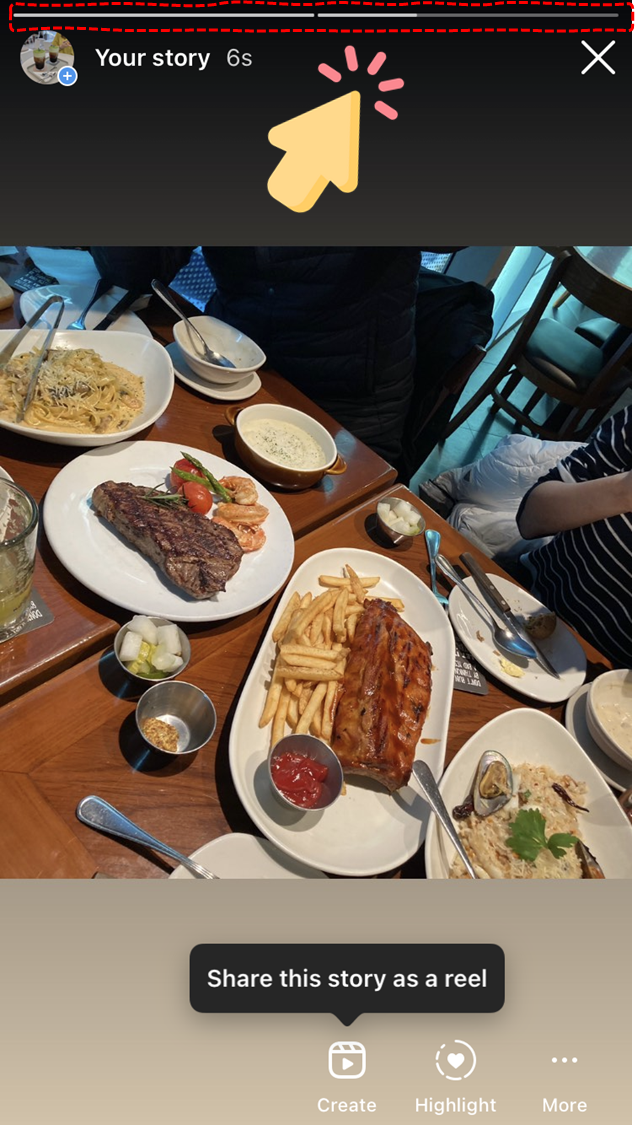 내 인스타 스토리에서 타임라인 바가 추가되어 스토리가 여러장 올라가 있는 모습을 확인할 수 있다.